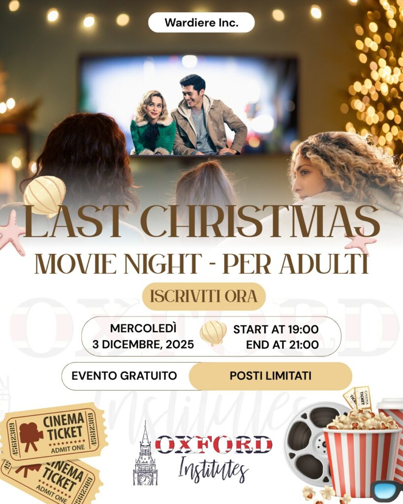 Oxford Institutes ti invita a una serata speciale: Movie Night dedicata al film “Last Christmas” con conversazione in inglese! L’evento si terrà mercoledì 3 dicembre 2025 dalle 19:00 alle 21:00 in Via Barlaam da Seminara n.9, 89127 Reggio di Calabria. Unisciti a noi per una pausa rilassante e un’esperienza unica: guarderemo insieme il film natalizio […]